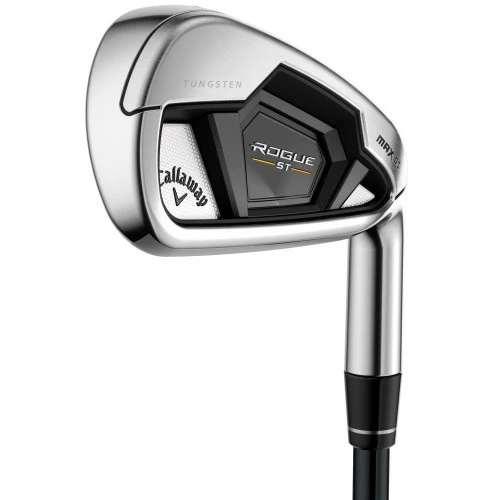 Rogue ST MAX OS Lite irons have a refined game-improvement shaping, with high launch, wide soles, and enhanced offset. The Lite version features more loft, lighter shafts and lighter swingweights to make these our highest launching, easiest to swing Rogue ST model.