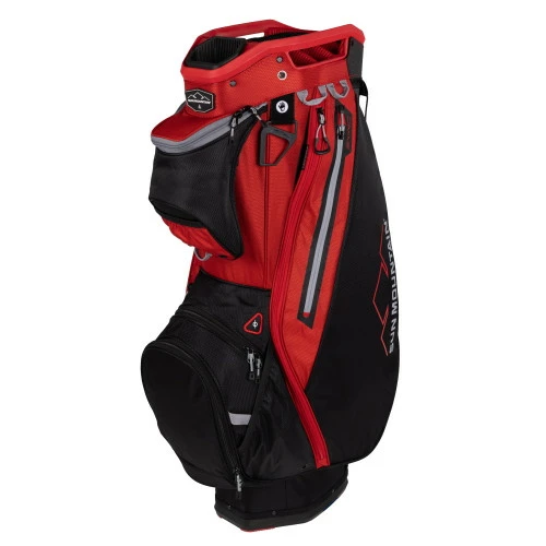 The Sync is designed specifically for use on push carts. Sun Mountain started with a top and bottom built to nest in the upper and lower bag wraps of their carts. Then, Sun Mountain molded the bottom so it fits over the lower bag rest of Speed Cart V1R, Pathfinder PX3 and PX4 to limit side-to-side bag motion. In addition, all pockets are forward-facing and accessible when the bag is on a cart. Finally, there is a cart strap pass-through so the Sync can be strapped to the cart without hindering pocket usage.